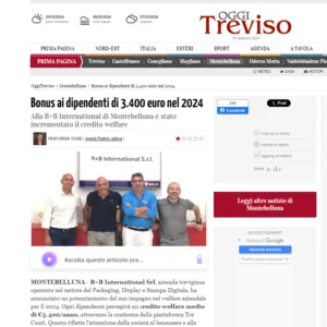 25 Gennaio 2024Oggi Treviso – bonus ai dipendenti di 3.400 euro nel 2024 alla B+B International